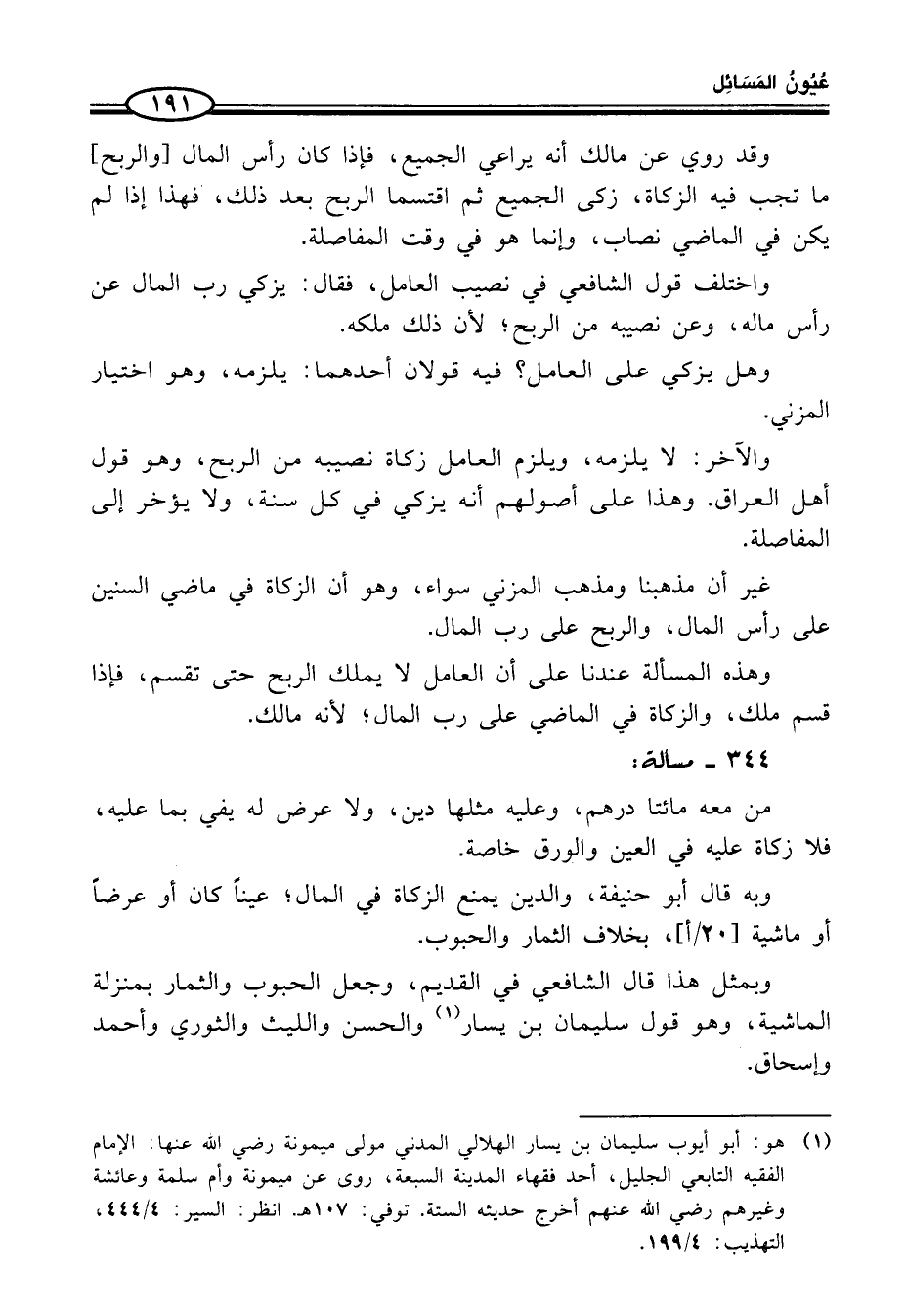 (¬1) هو: أبو أيوب سليمان بن يسار الهلالي المدني مولى ميمونة رضي الله عنها. الإمام الفقيه التابعي الجليل، أحد فقهاء المدينة السبعة، روى عن ميمونة وأم سلمة وعائشة وغيرهم رضي الله عنهم أخرج حديثه الستة. توفي: 107هـ. انظر: السير: 4/ 444، التهذيب: 4/ 199.