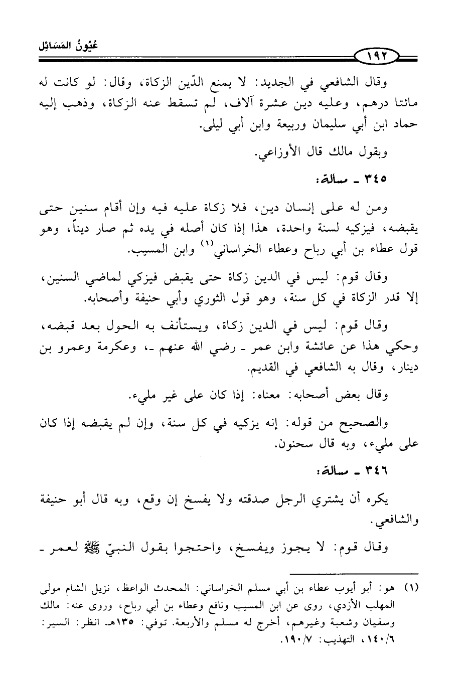 (¬1) هو: أبو أيوب عطاء بن أبي مسلم الخراساني: المحدث الواعظ، نزيل الشّام مولى المهلب الأزدي، روى عن ابن المسيَّب ونافع وعطاء بن أبي رباح، وروى عنه: مالك وسفيان وشعبة وغيرهم، أخرج له مسلم والأربعة. توفي: 135 هـ. انظر: السير: 6/ 140، التهذيب: 7/ 190.