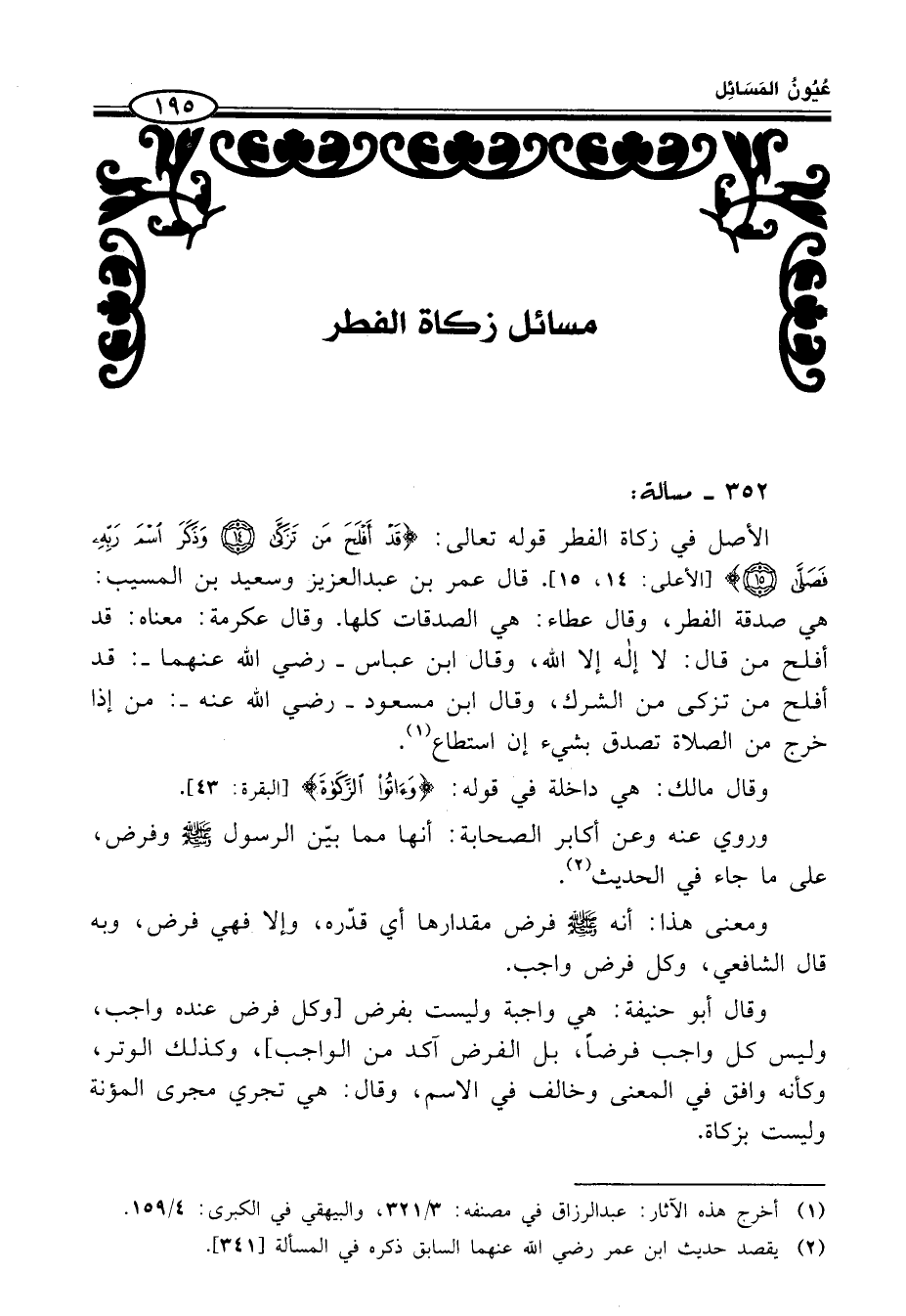 (¬2) يقصد حديث ابن عمر رضي الله عنهما السابق ذكره في المسألة [341].