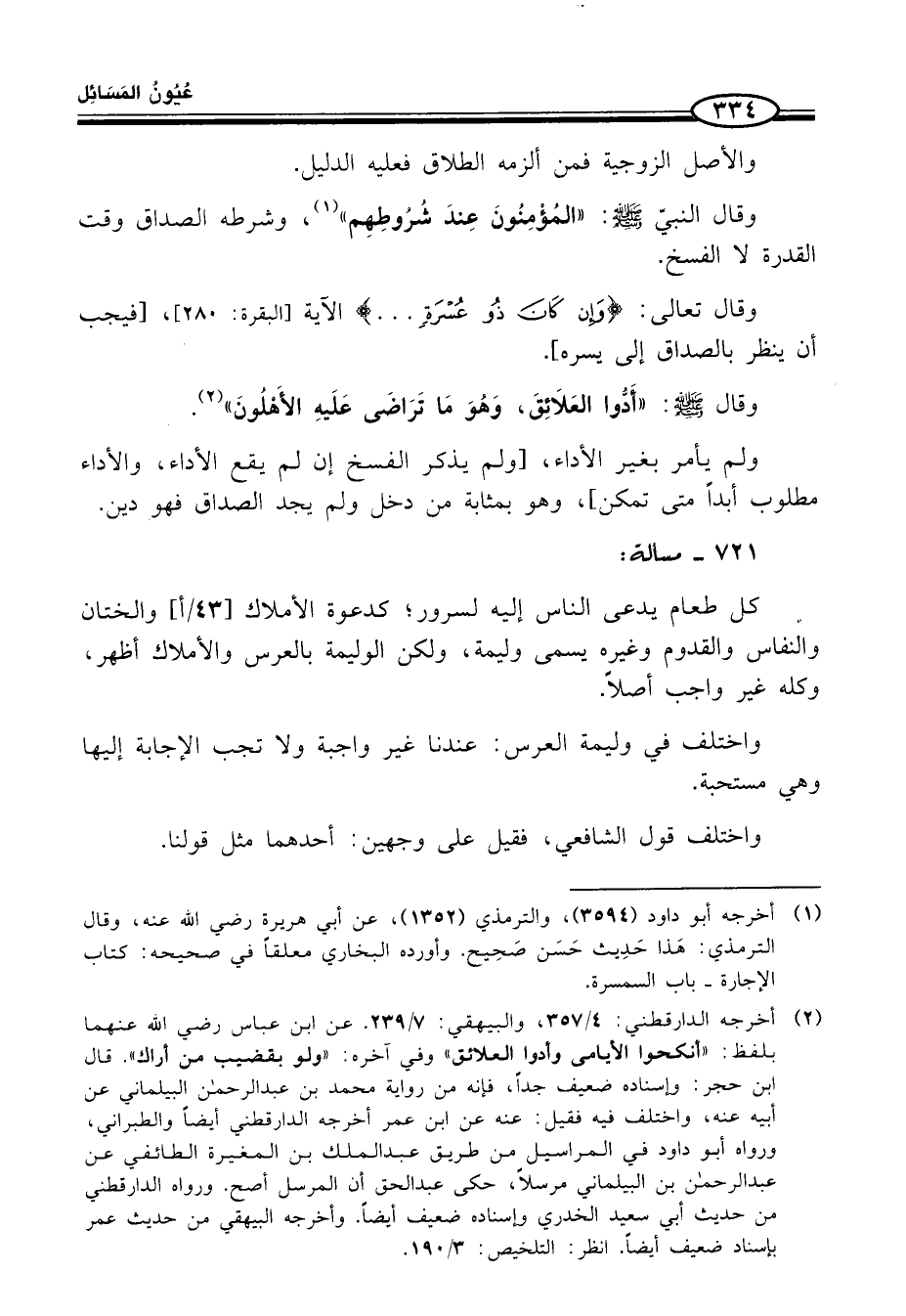 وقال - صلّى الله عليه وسلم -: "أَدُّوا العَلَائِقَ، وَهُوَ مَا تَرَاضَى عَلَيهِ الأَهْلُونَ" (¬2).