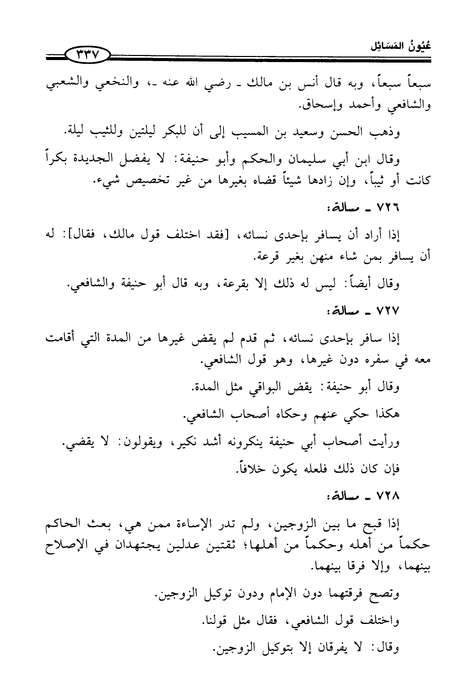 وقال أيضًا: ليس له ذلك إِلَّا بقرعة، وبه قال أبو حنيفة والشّافعيّ.