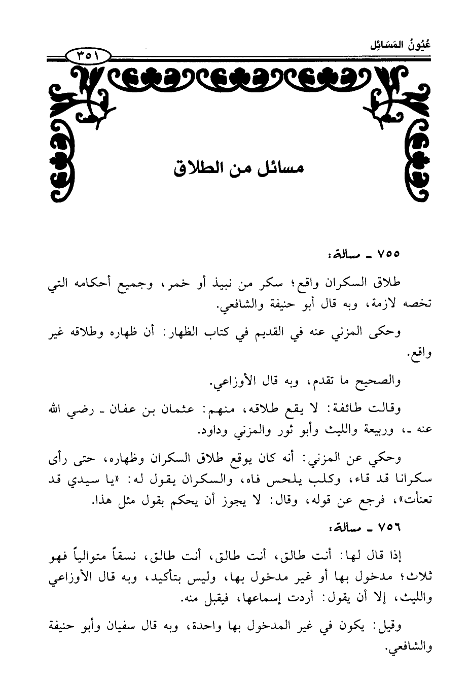وحكي عن المزني: أنّه كان يوقع طلاق السكران وظهاره، حتّى رأى سكرانا قد قاء، وكلب يلحس فاه، والسكران يقول له: "يا سيدي قد تعنأت"، فرجع عن قوله، وقال: لا يجوز أن يحكم بقولى مثل هذا.