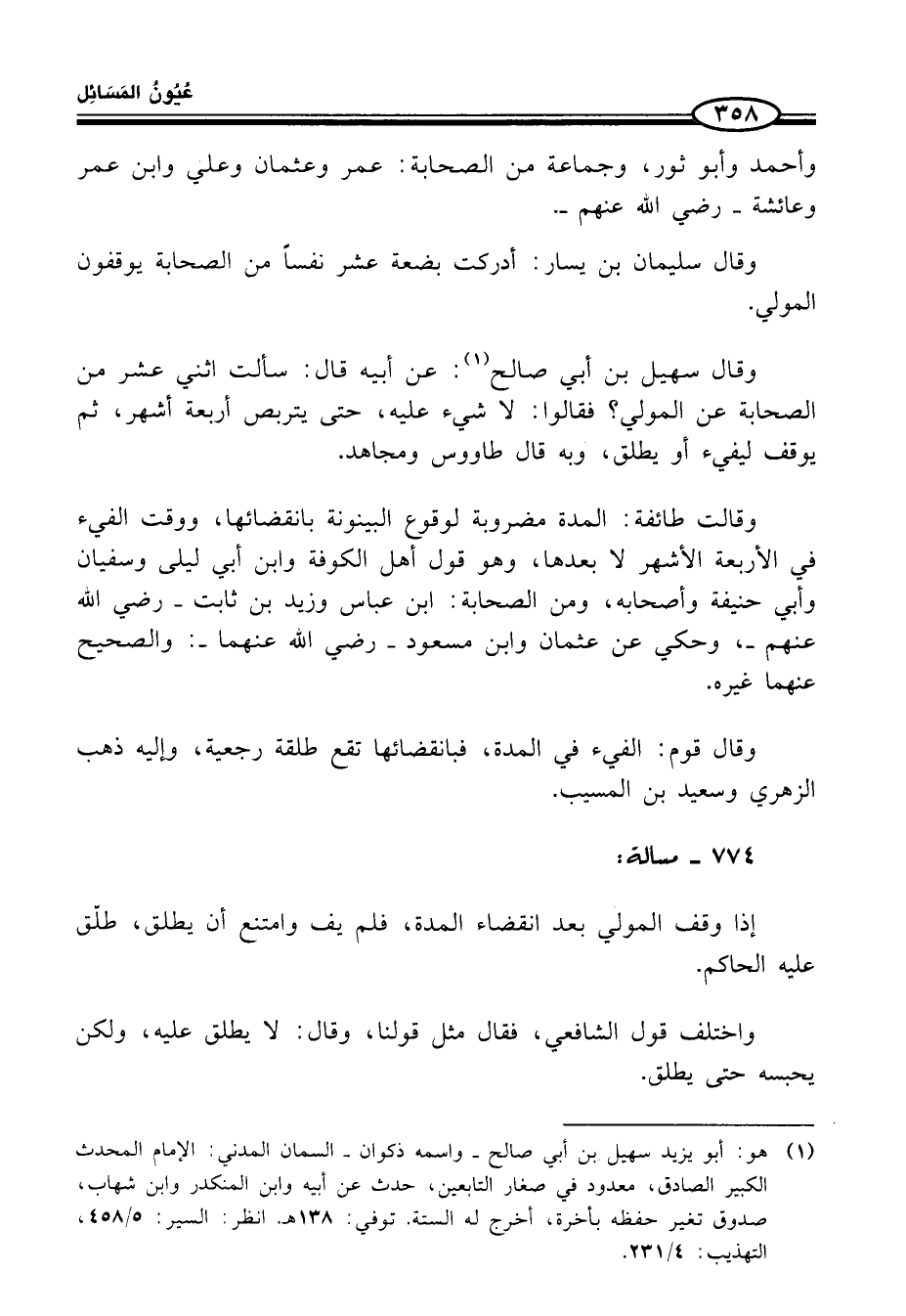 وقال سهيل بن أبي صالح (¬1): عن أبيه قال سألت اثني عشر من الصّحابة عن المولي؛ فقالوا: لا شيء عليه، حتّى يتربص أربعة أشهر، ثمّ يوقف ليفيء أو يطلق، وبه قال طاووس ومجاهد.