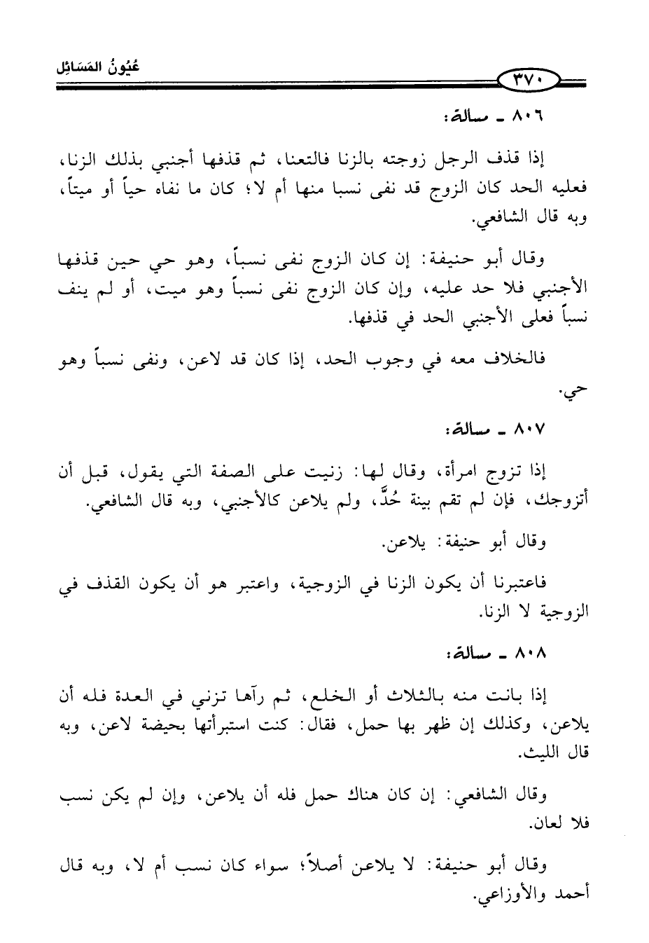 إذا قذف الرَّجل زوجته بالزنا فالتعنا، ثمّ قذفها أجنبي بذلك الزِّنا، فعليه الحدّ كان الزوج قد نفى نسبا منها أم لا؛ كان ما نفاه حيًا أو ميتًا، وبه قال الشّافعيّ.