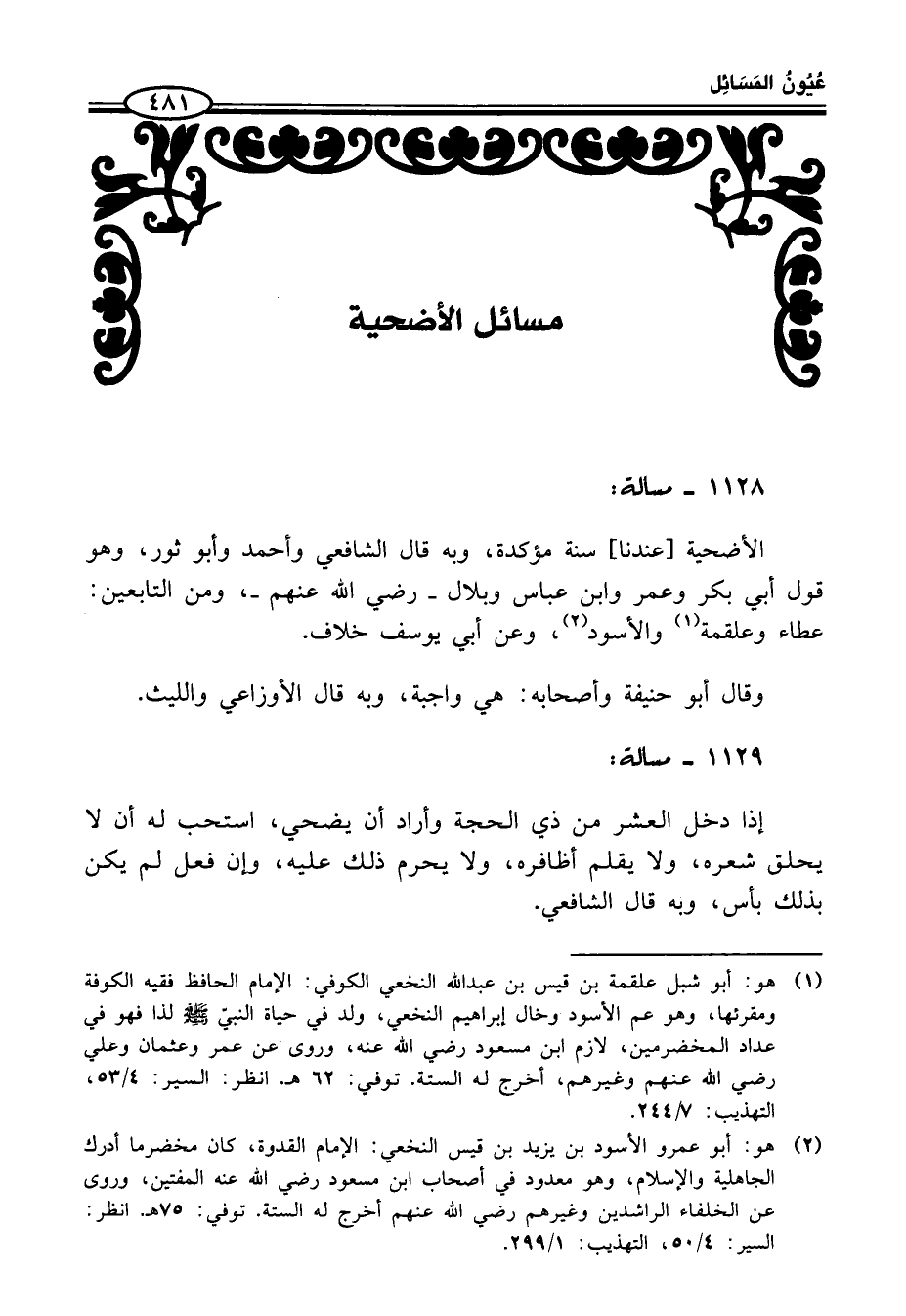 (¬2) هو: أبو عمرو الأسود بن يزيد بن قيس النخعي: الإمام القدوة، كان مخضرما أدرك الجاهلية والإِسلام، وهو معدود في أصحاب ابن مسعود رضى الله عنه المفتين، وروى عن الخلفاء الراشدين وغيرهم رضى الله عنهم أخرج له الستة. توفي: 75 هـ. انظر: السير: 4/ 50، التهذيب: 1/ 299.