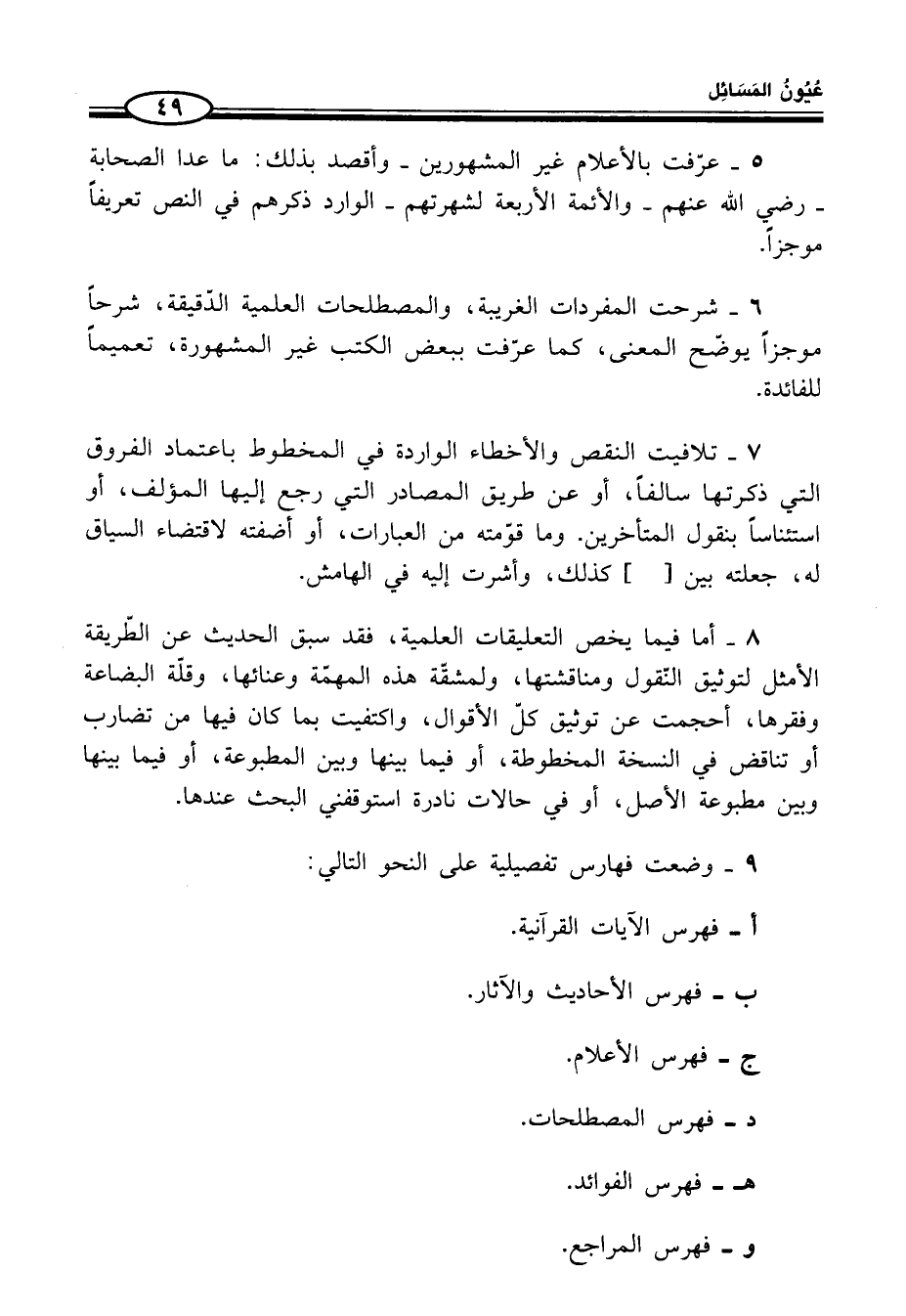 5 - عرّفت بالأعلام غير المشهورين - وأقصد بذلك: ما عدا الصّحابة -رضي الله عنهم- والأئمة الأربعة لشهرتهم - الوارد ذكرهم في النص تعريفًا موجزًا.