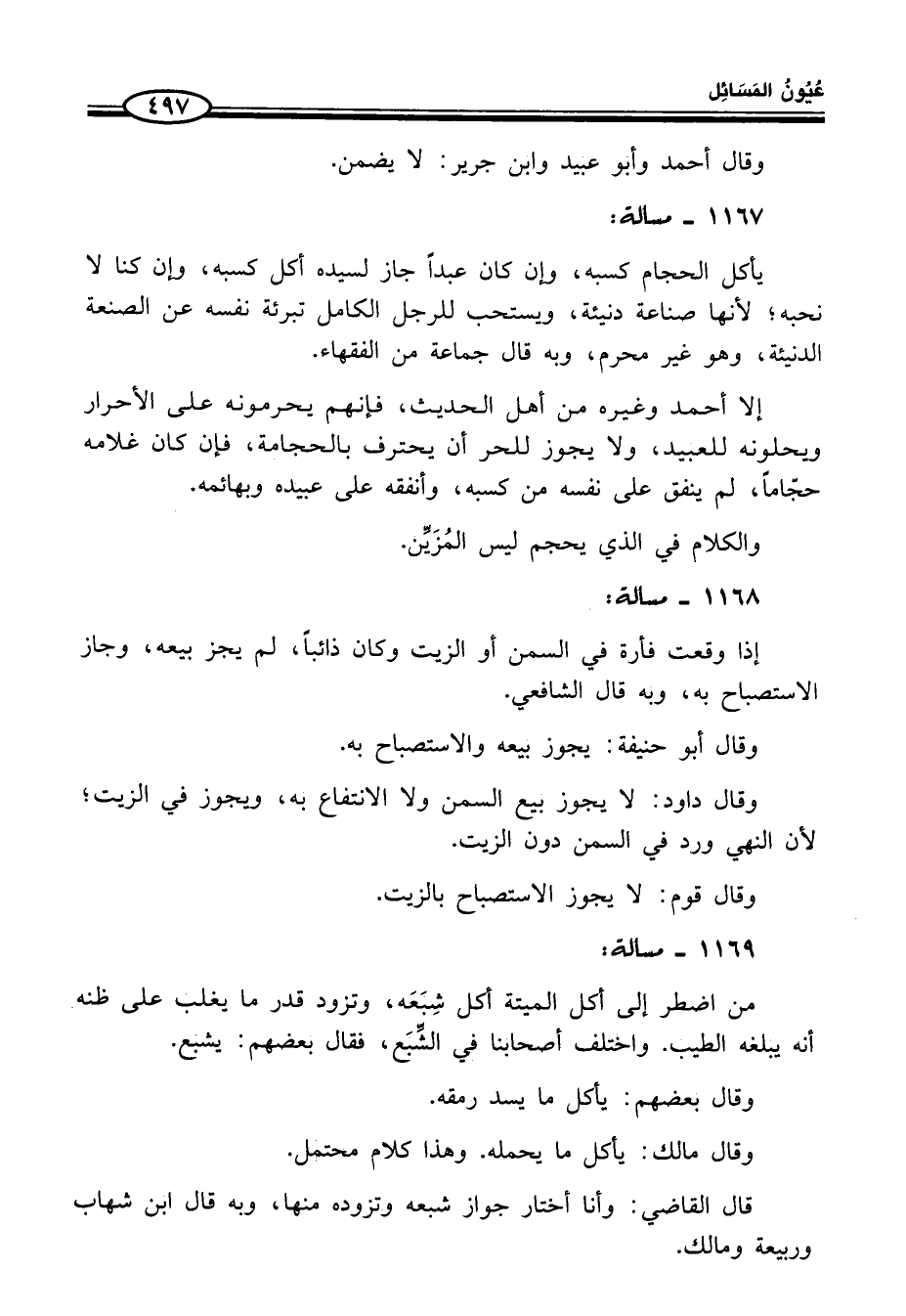 إِلَّا أحمد وغيره من أهل الحديث، فإنهم يحرمونه على الأحرار ويحلونه للعبيد، ولا يجوز للحر أن يحترف بالحجامة، فإن كان غلامه حجّامًا، لم ينفق على نفسه من كسبه، وأنفقه على عبيده وبهائمه.