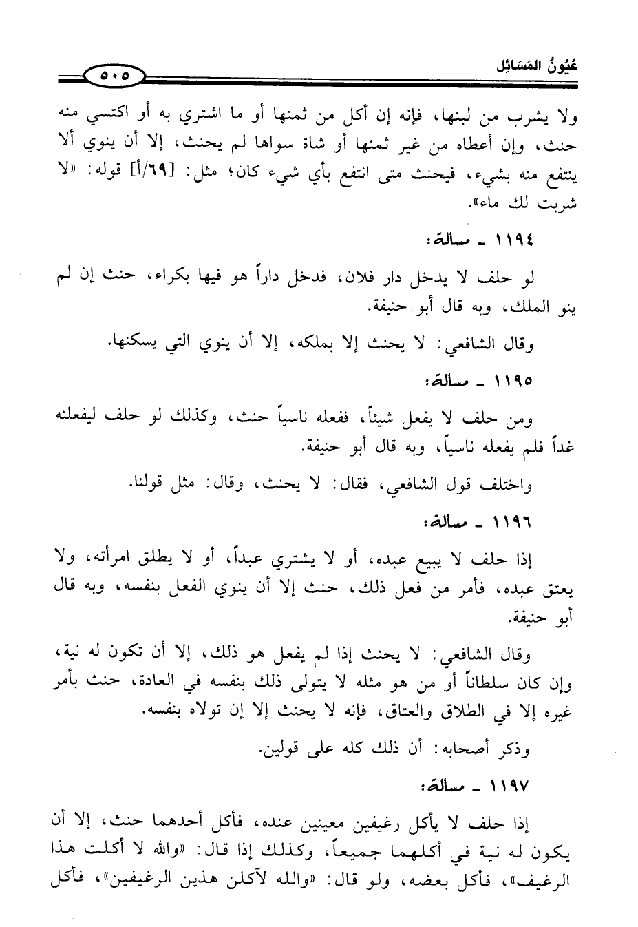 واختلف قول الشّافعيّ، فقال: لا يحنث، وقال: مثل قولنا.
