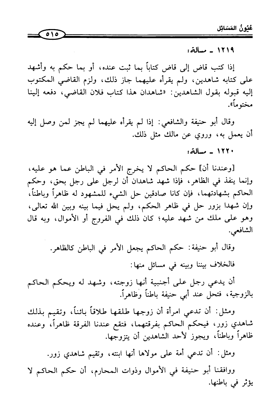 ووافقنا أبو حنيفة في الأموال وذوات المحارم، أن حكم الحاكم لا يؤثر في باطنها.