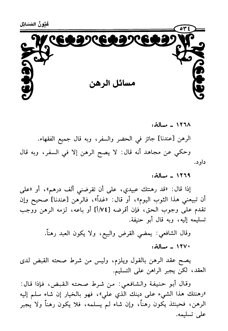الرَّهْن [عندنا] جائز في الحضر والسفر، وبه قال جميع الفقهاء.
