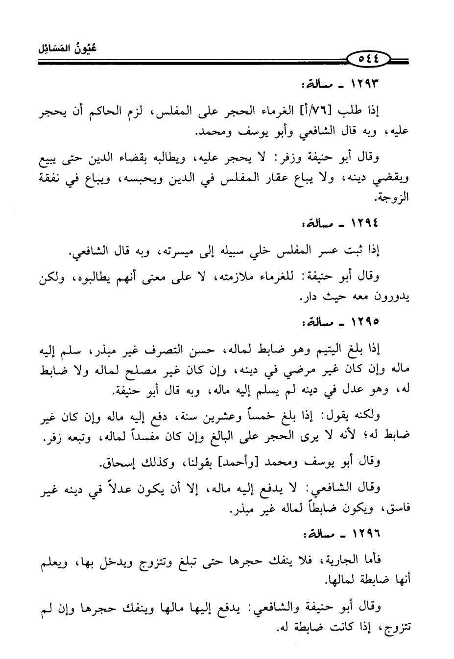 وقال الشّافعيّ: لا يدفع إليه ماله، إِلَّا أن يكون عدلًا في دينه غير فاسق، ويكون ضابطًا لماله غير مبذر.