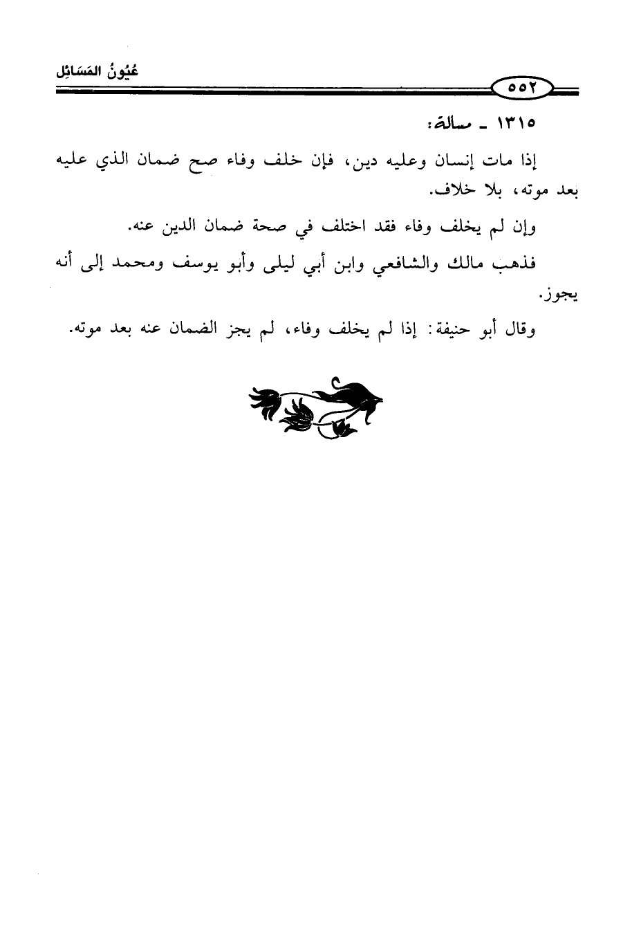 وقال أبو حنيفة: إذا لم يخلف وفاء، لم يجز الضمان عنه بعد موته.
