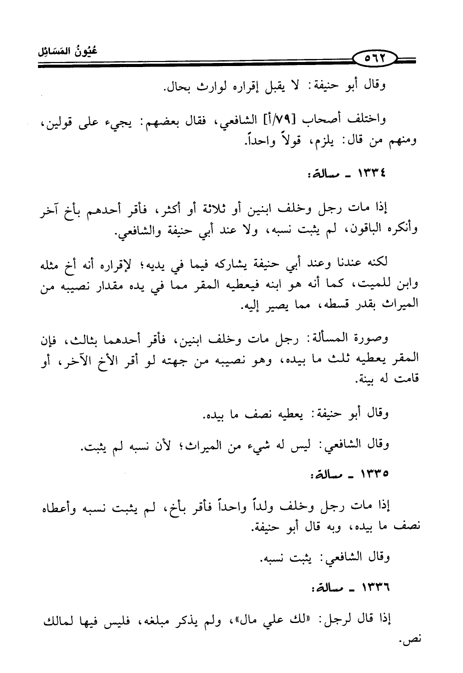 إذا مات رجل وخلف ابنن أو ثلاثة أو أكثر، فأقر أحدهم بأخ آخر وأنكره الباقون، لم يثبت نسبه، ولا عند أبي حنيفة والشّافعيّ.