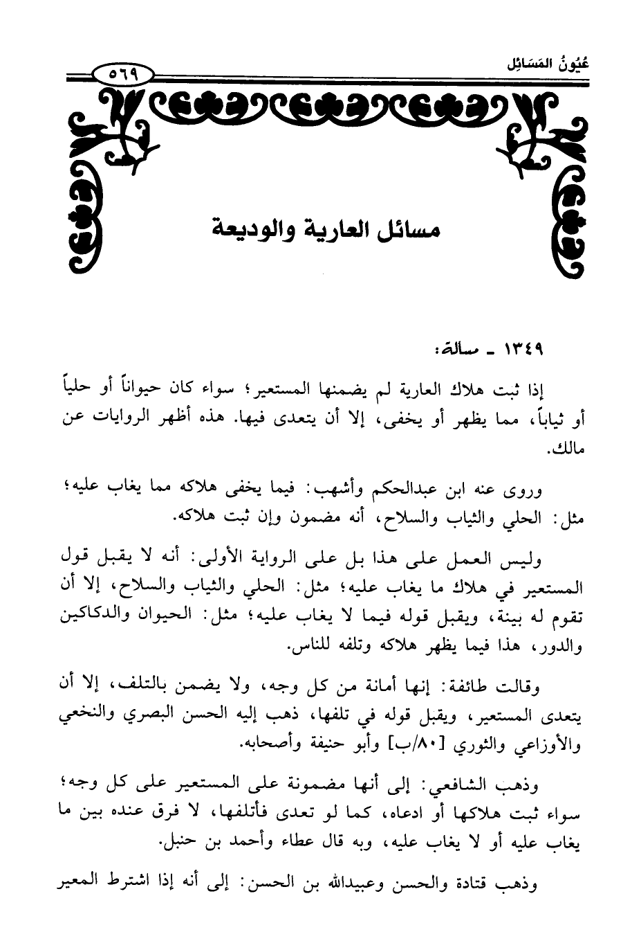 مسائل العارية والوديعة