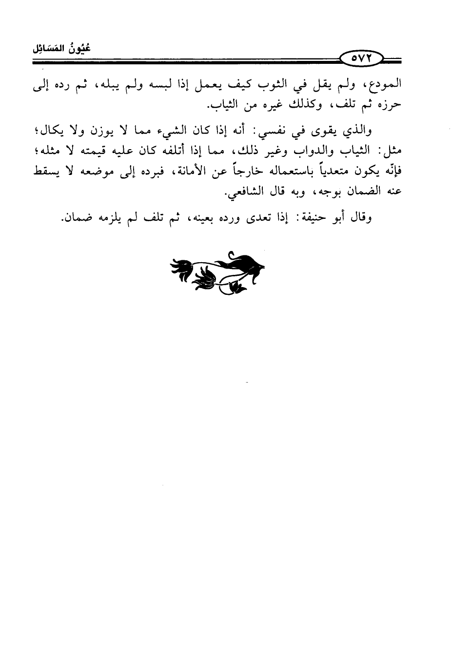 والذي يقوى في نفسي: أنّه إذا كان الشيء ممّا لا يوزن ولا يكال؛ مثل: الثِّياب والدواب وغير ذلك، ممّا إذا أتلفه كان عليه قيمته لا مثله؛ فإنّه يكون متعديًا باستعماله خارجًا عن الأمانة، فبرده إلى موضعه لا يسقط عنه الضمان بوجه، وبه قال الشّافعيّ.