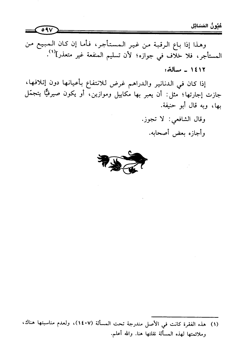 (¬1) هذه الفقرة كانت في الأصل مندرجة تحت المسألة (1407)، ولعدم مناسبتها هناك، وملائمتها لهذه المسألة نقلتها هنا. والله أعلم.
