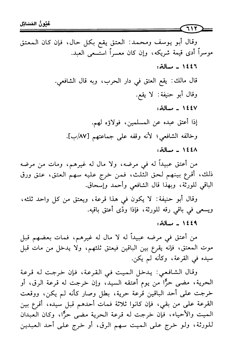 من أعتق في مرضه عبيدًا له لا مال له غيرهم، فمات بعضهم قبل موت المعتق، فإنّه يقرع بين الباقين فيعتق ثلثهم، ولا يدخل من مات قبل سيده في القرعة، وكأنّه لم يكن.