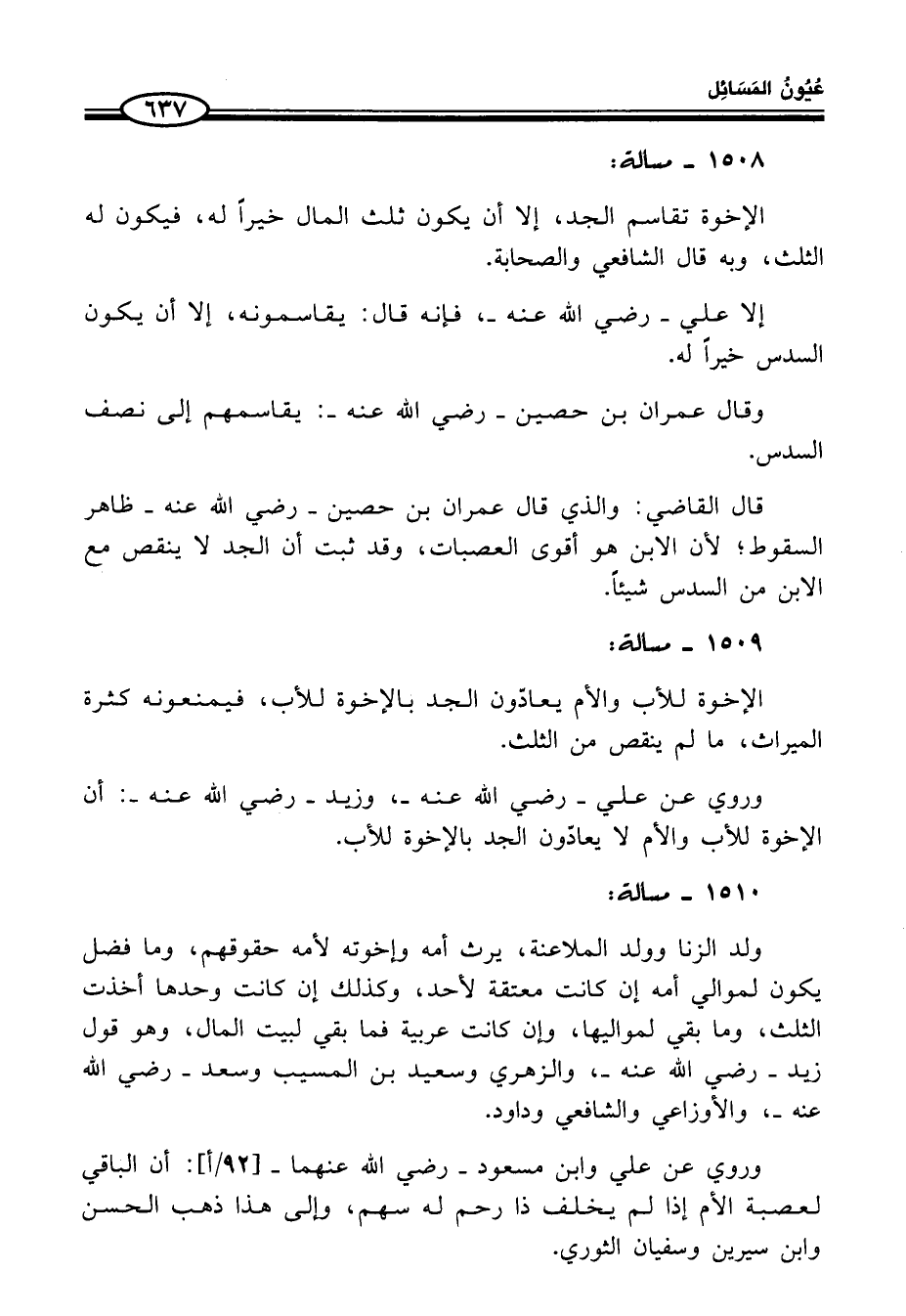 إِلَّا علي -رضي الله عنه -، فإنّه قال: يقاسمونه، إِلَّا أن يكون السدس خيرًا له.