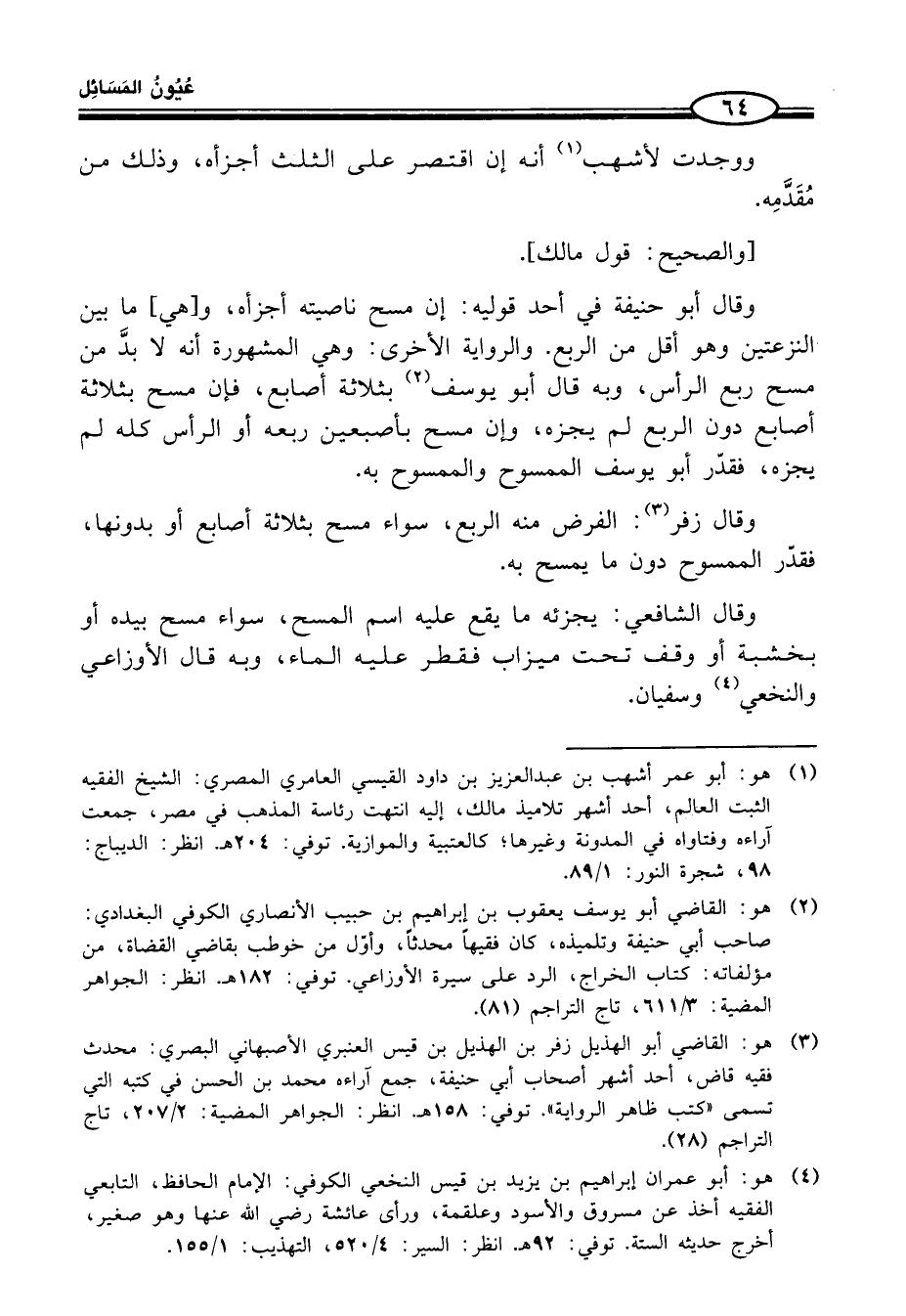 (¬3) هو: القاضي أبو الهذيل زفر بن الهذيل بن قيس العنبري الأصبهاني البصري: محدث فقيه قاض، أحد أشهر أصحاب أبي حنيفة، جمع آراءه محمَّد بن الحسن في كتبه الّتي تسمى "كتب ظاهر الرِّواية". توفي: 158 هـ. انظر: الجواهر المضية: 2/ 207، تاج التراجم (28).