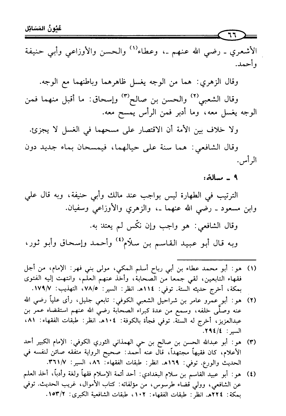 (¬2) هو: أبو عمرو عامر بن شراحيل الشّعبيّ الكوفي: تابعي جليل، رأى عليًا رضي الله عنه وصلَّى خلفه، وسمع من عدة كبراء الصّحابة رضي الله عنهم استقضاه عمر بن عبد العزيز، أخرج له الستة. توفي فجأة بالكوفة: 104 هـ. انظر: طبقات الفقهاء: 81، السير: 4/ 294.