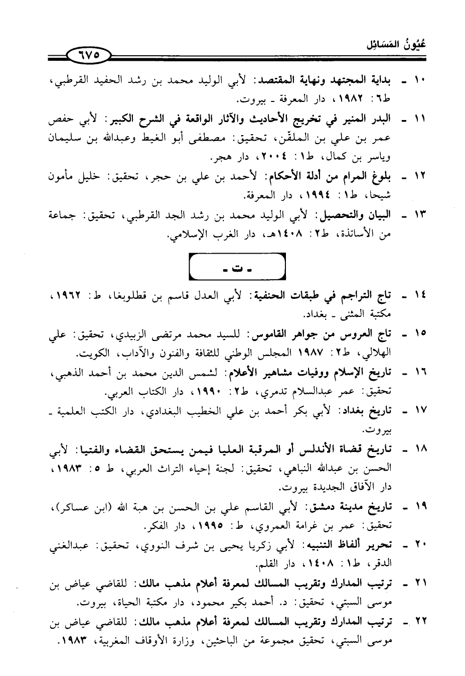 22 - ترتيب المدارك وتقريب المسالك لمعرفة أعلام مذهب مالك؛ للقاضي عياض بن موسى السبتي، تحقيق مجموعة من الباحثين، وزارة الأوقاف المغربية، 1983.