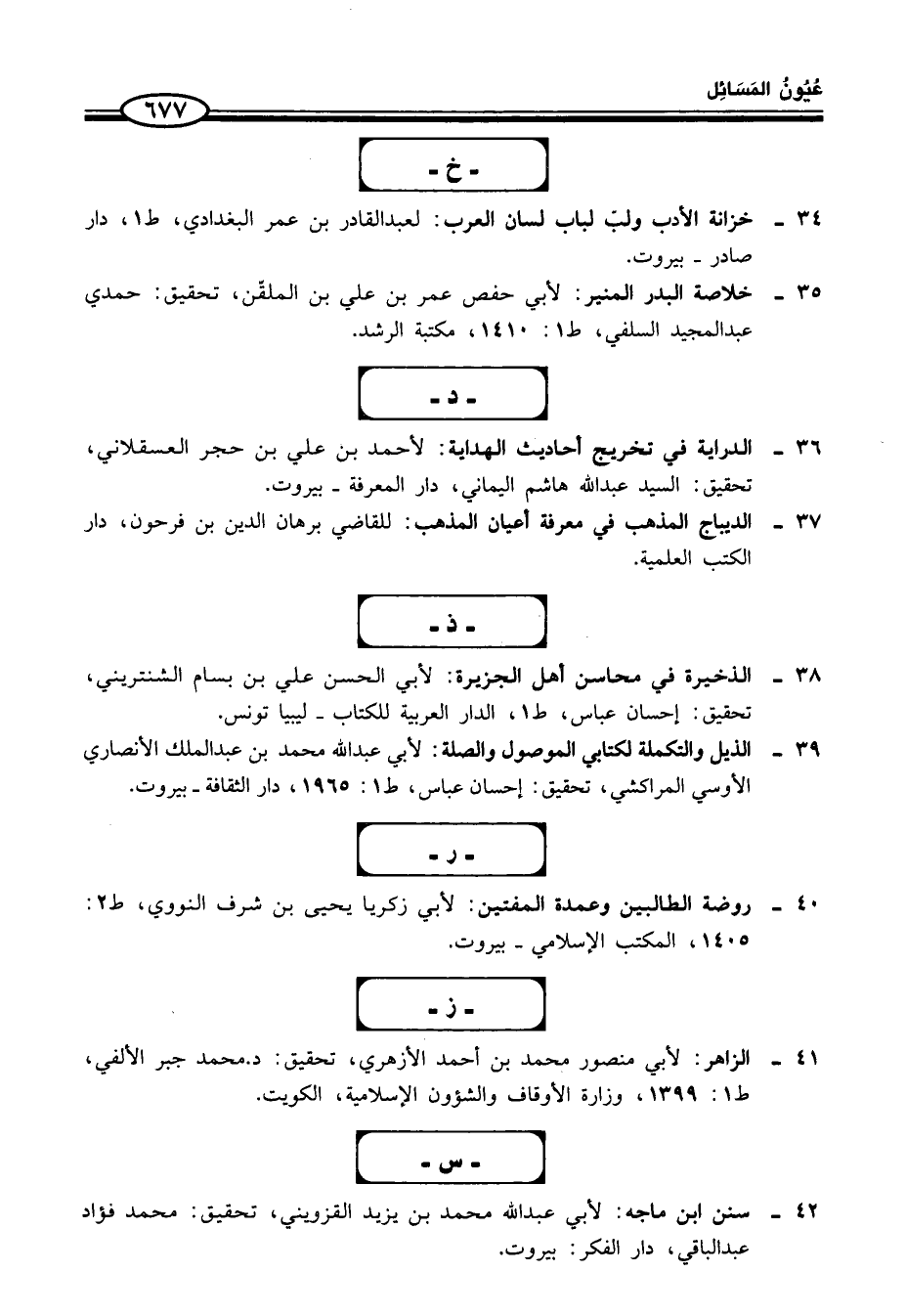 34 - خزانة الأدب ولبّ لباب لسان العرب: لعبد القادر بن عمر البغدادي، ط 1، دار صادر - بيروت.