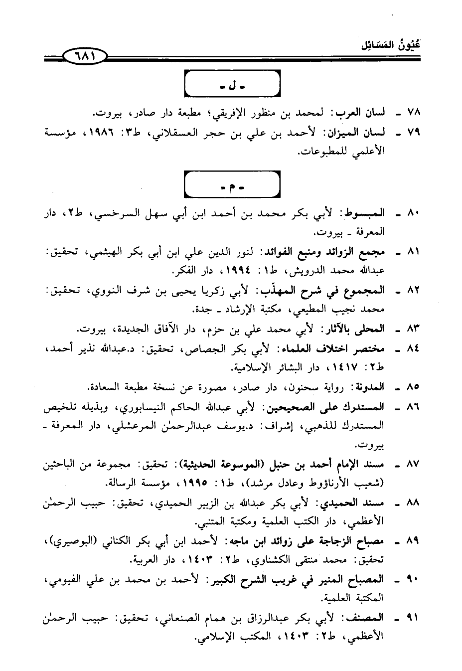 78 - لسان العرب: لمحمد بن منظور الإفريقي؛ مطبعة دار صادر، بيروت.