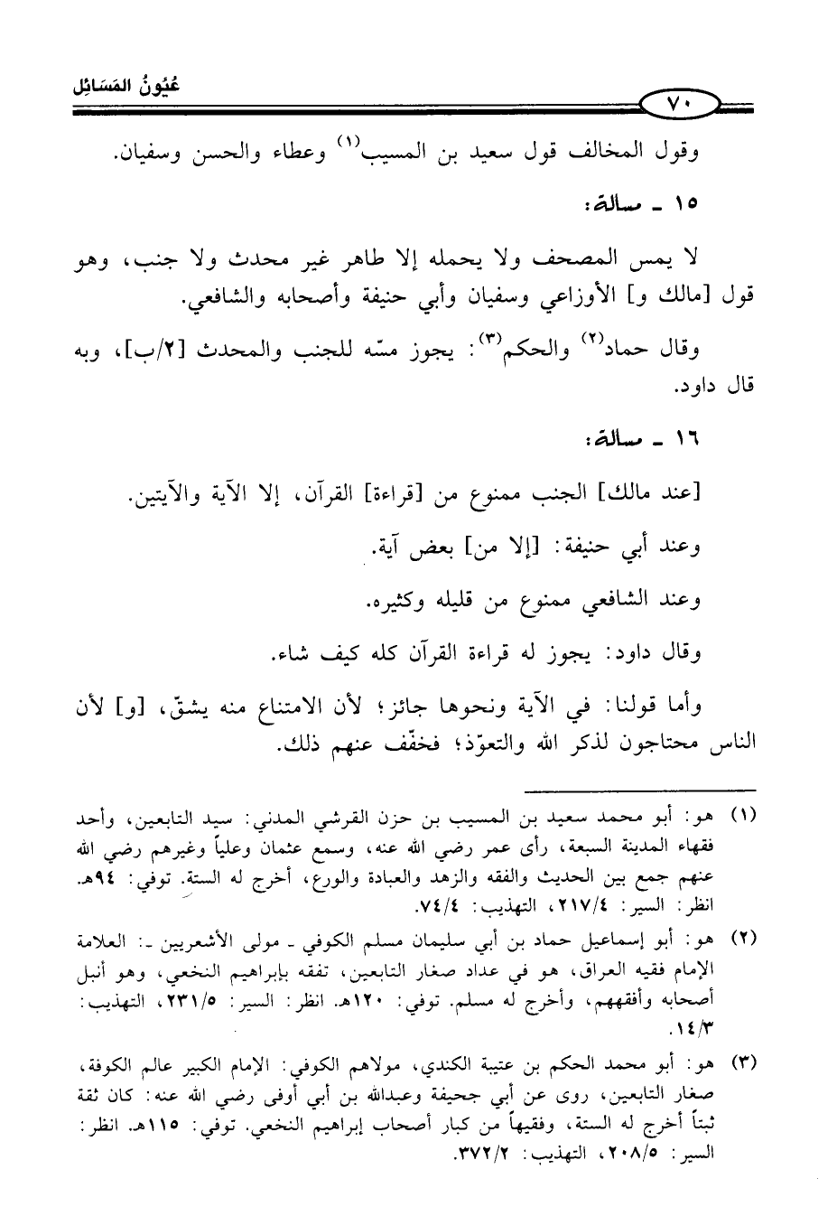 (¬1) هو: أبو محمَّد سعيد بن المسيَّب بن حزن القرشي المدني: سيد التابعين، واحد