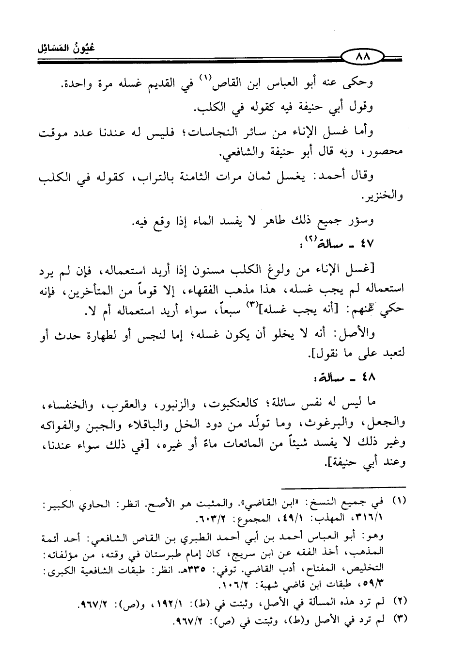 (¬2) لم ترد هذه المسألة في الأصل، وثبتت في (ط): 1/ 192، و (ص): 2/ 967.