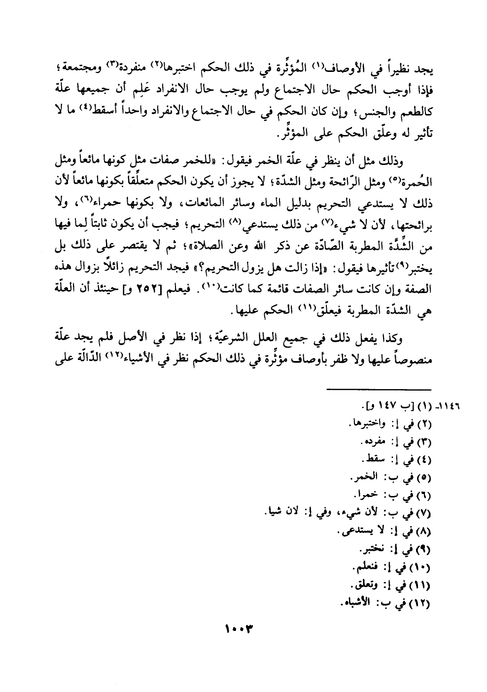 منصوصاً عليها ولا ظفر باًوصاف مؤثرة في ذلك الحكم نظر في الأشياء (12) الدالة على