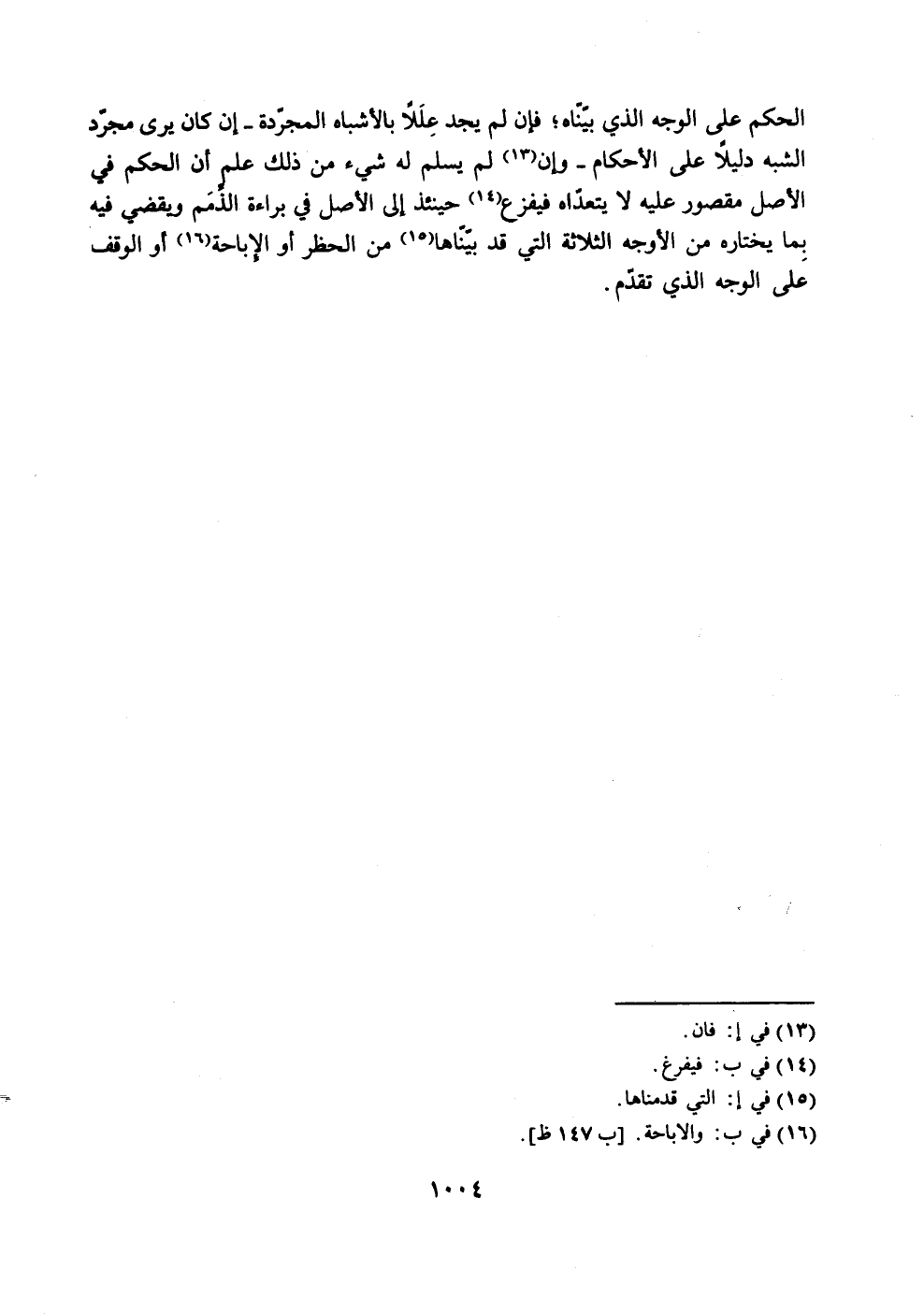 بما يختاره من الأوجه الثلاثة التي قد بئناها (15) من الحظر أو الإباحة (16) أو الوقف