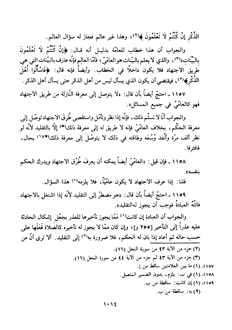 1159 - احتجّ أيضا بأن قال: "هو مضطر إلى التقليد لأنه إذا اشتغل بالاجتهاد