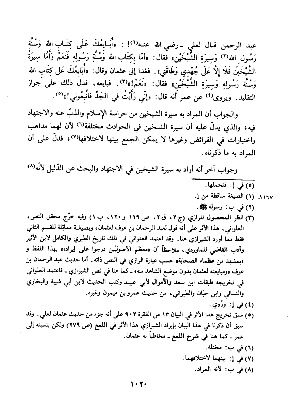 وجواب آخر أنه أراد به سيرة الشيخين في الاجتهاد والبحث عن الدليل لأنه (8)