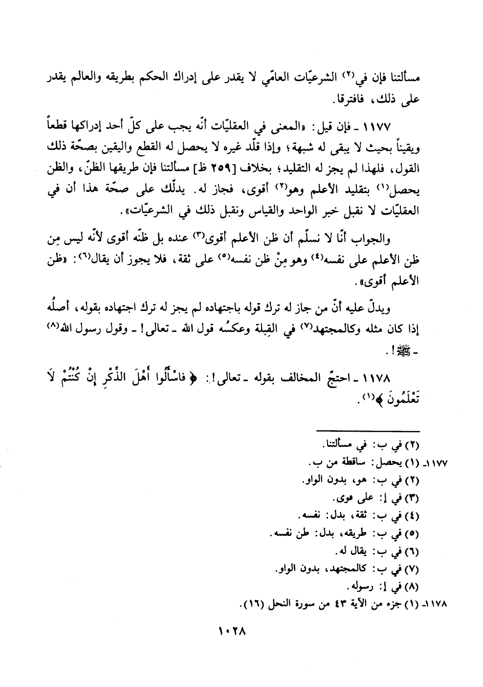 1178 - احتجّ المخالف بقوله -تعالى إ: " فاساثوا أهل الذكر إن كنتم لا