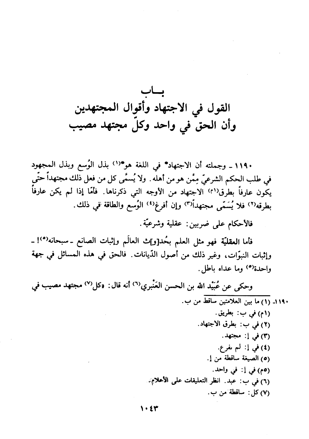 1190 - وجملته أن الاجتهاد* في اللغة هو* (1) بذل الوسع وبذل المجهود
