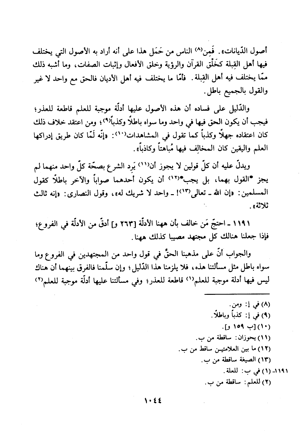 أصول الديانات ". فمن (8 (الناس من حمل هذا على أنه أراد به الأصول التي يختلف