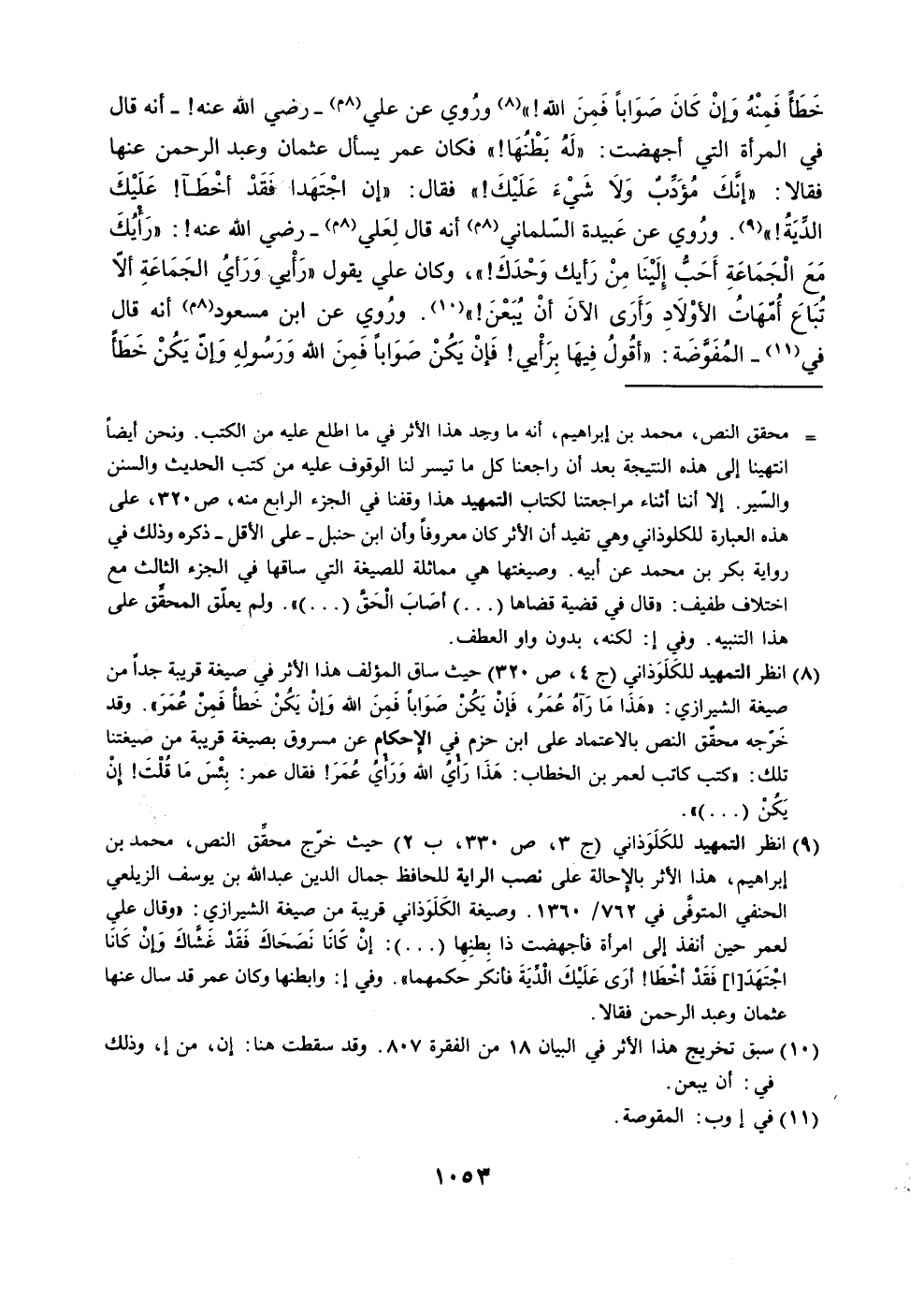 (8) انظر التمهيد للكلوذاني (ح 4، ص 320) حيث ساق المؤلف هذا الأثر في صيغة قريبة جدا من