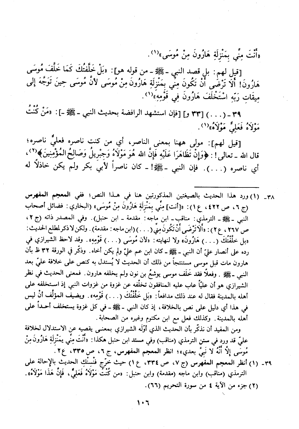 39 - (. . .) [33 و] [فإن استشهد الرافضة بحديث النبي --لمجر -]: "من كنت
