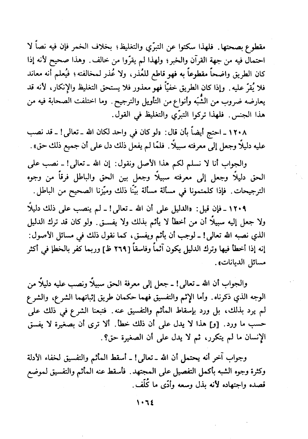 1209 - فإن فيل: "الدليل على أن الله - تعالى! - لم ينصب على ذلك دليلا