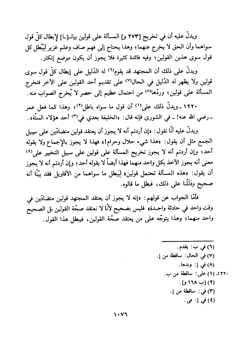 1225 - ويدل ذلك على (1) أن قول ما سواه باطل (2)؛ وهذا كما فعل عمر