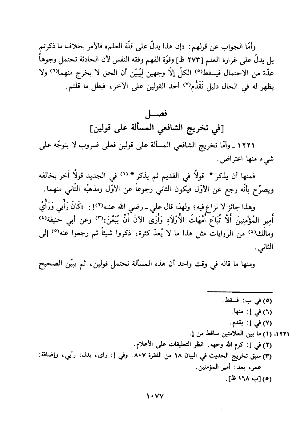 1221 - وأما تخريج الشافعي المسألة على قولين فعلى ضروب لا يتوخه على