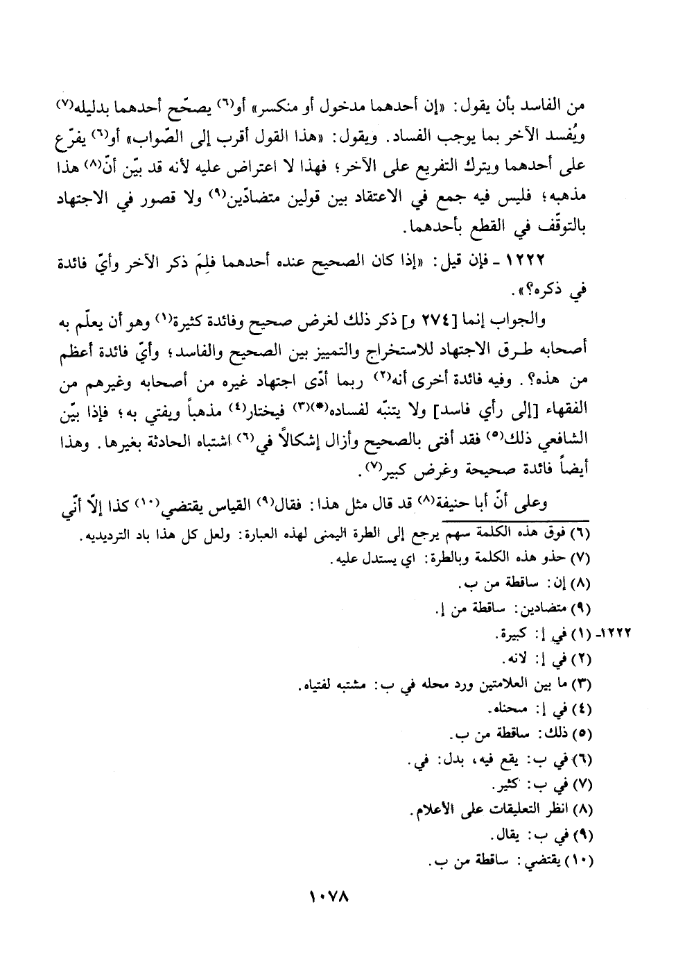 1222 - فإن قيل: "إذا كان الصحيح عنده أحدهما فلم ذكر الآخر وأي فائدة