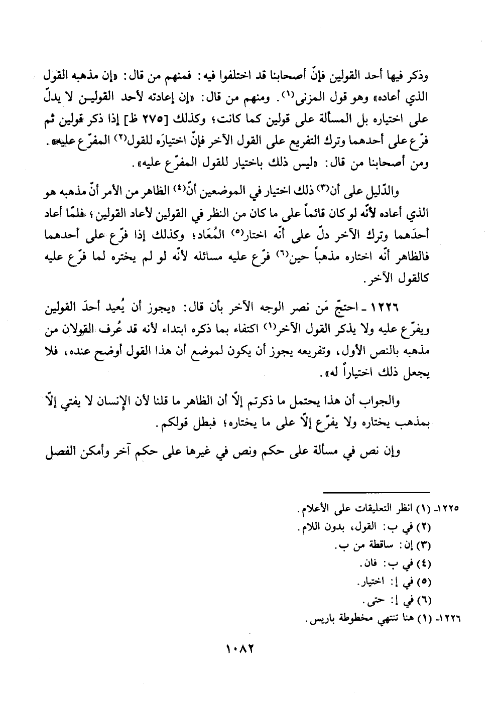 1226 - احتجّ من نصر الوجه الآخر بأن قال: "يجوز أن يعيد أحد القولين