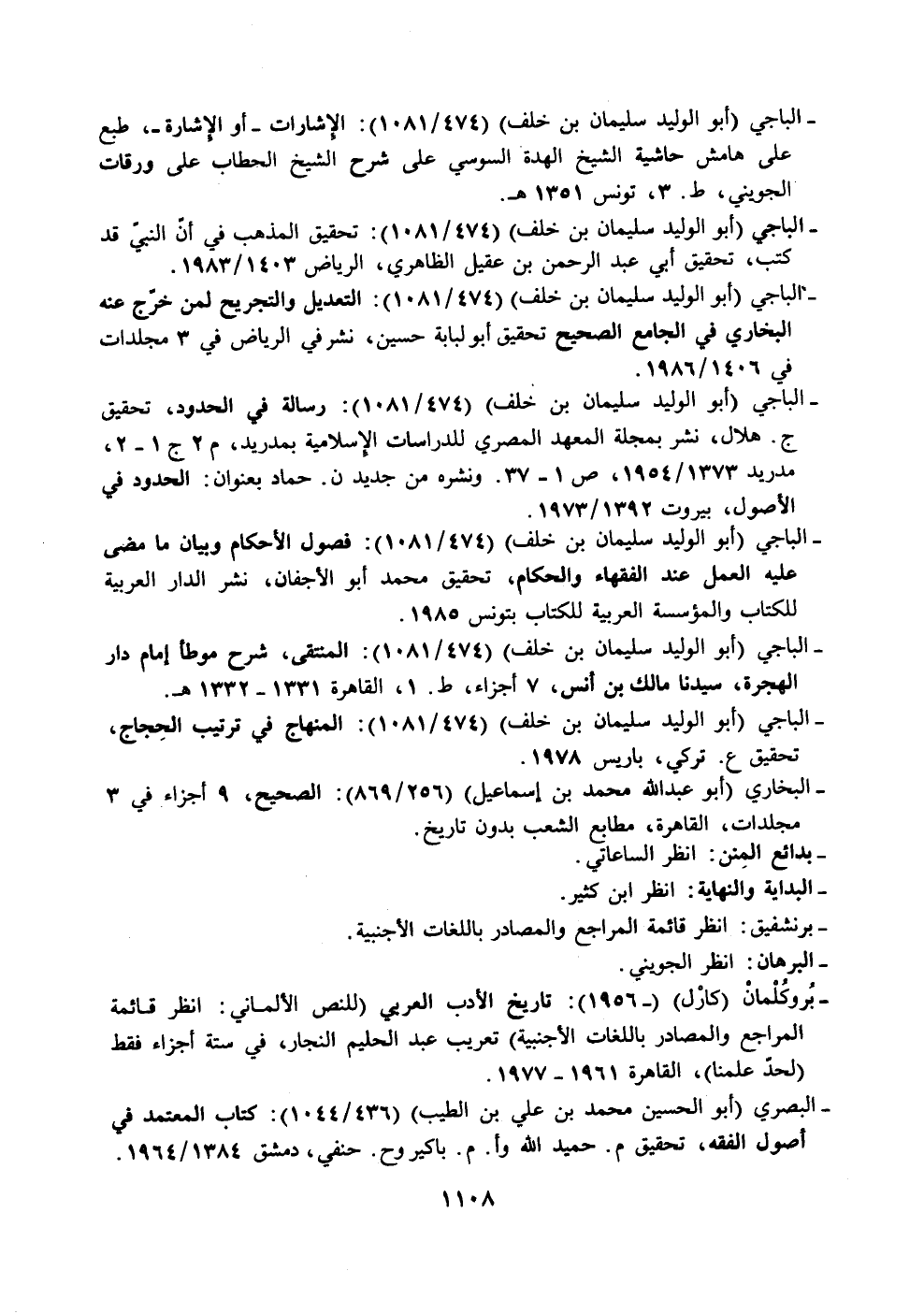 - الباجي (ابو الوليد سليمان بن خلف) (1081/ 474): الإشارات -او الإشارة -، طبع