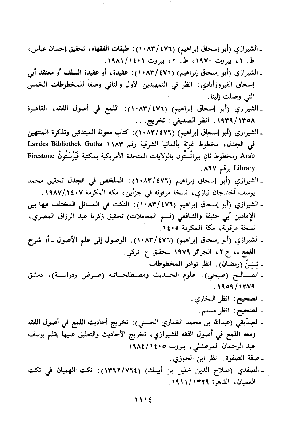 - الشيرازي (أبو إسحاق إبراهيم) (476/ 083 1): طبقات الفقهاه، تحقيق إحسان عبماس،