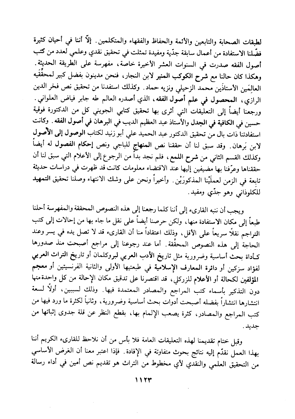 العالمين الأستاذين محمد الزحيلي ونزيه حماد. وكذلك استفدنا من تحقيق نص فخر الدين
