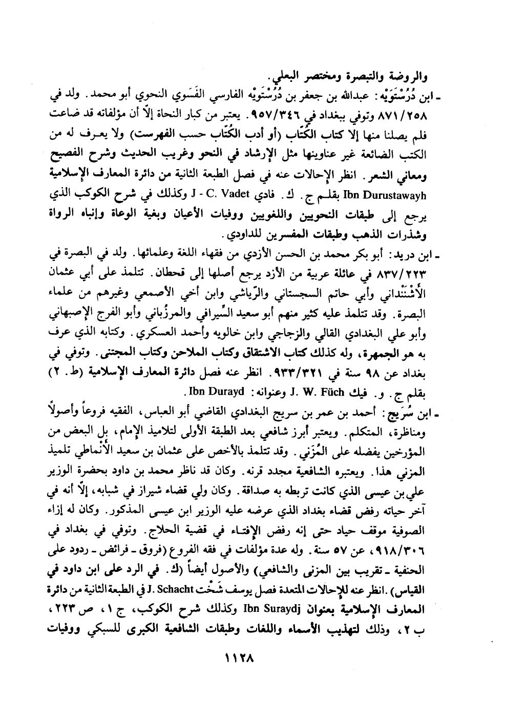 Ibn Durustawayh بقلم ج. ك. فادي J - C. Vadet وكذلك في شرح الكوكب الذي