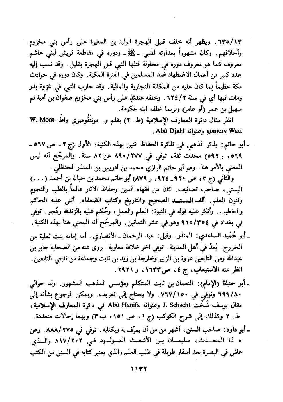 ابو حاتم: يذكر الذهى في تدكرة الحفاظ اثنين بهذ* الكنية؛ الأول (ج 2، ص 567 -