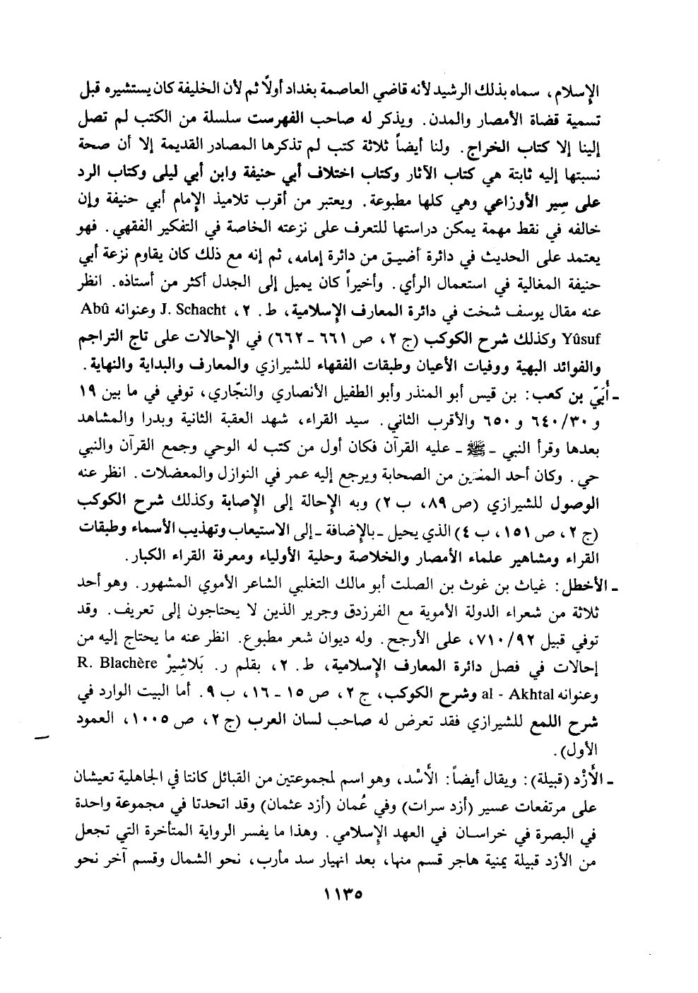 إحالات في فصل دائرة المعار! الإسلامية، ط. 2، بقلم ر. بلاشير Blachere . ول
