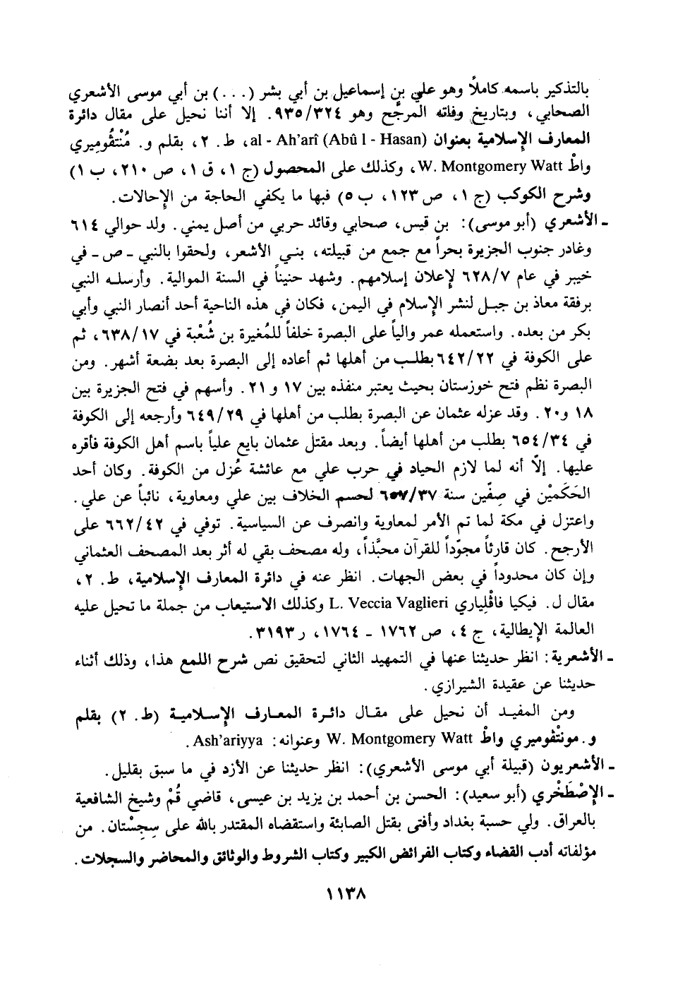 و. موشفوميري واط W. Montgomery Watt وعنوانه: Ash' ariyya .